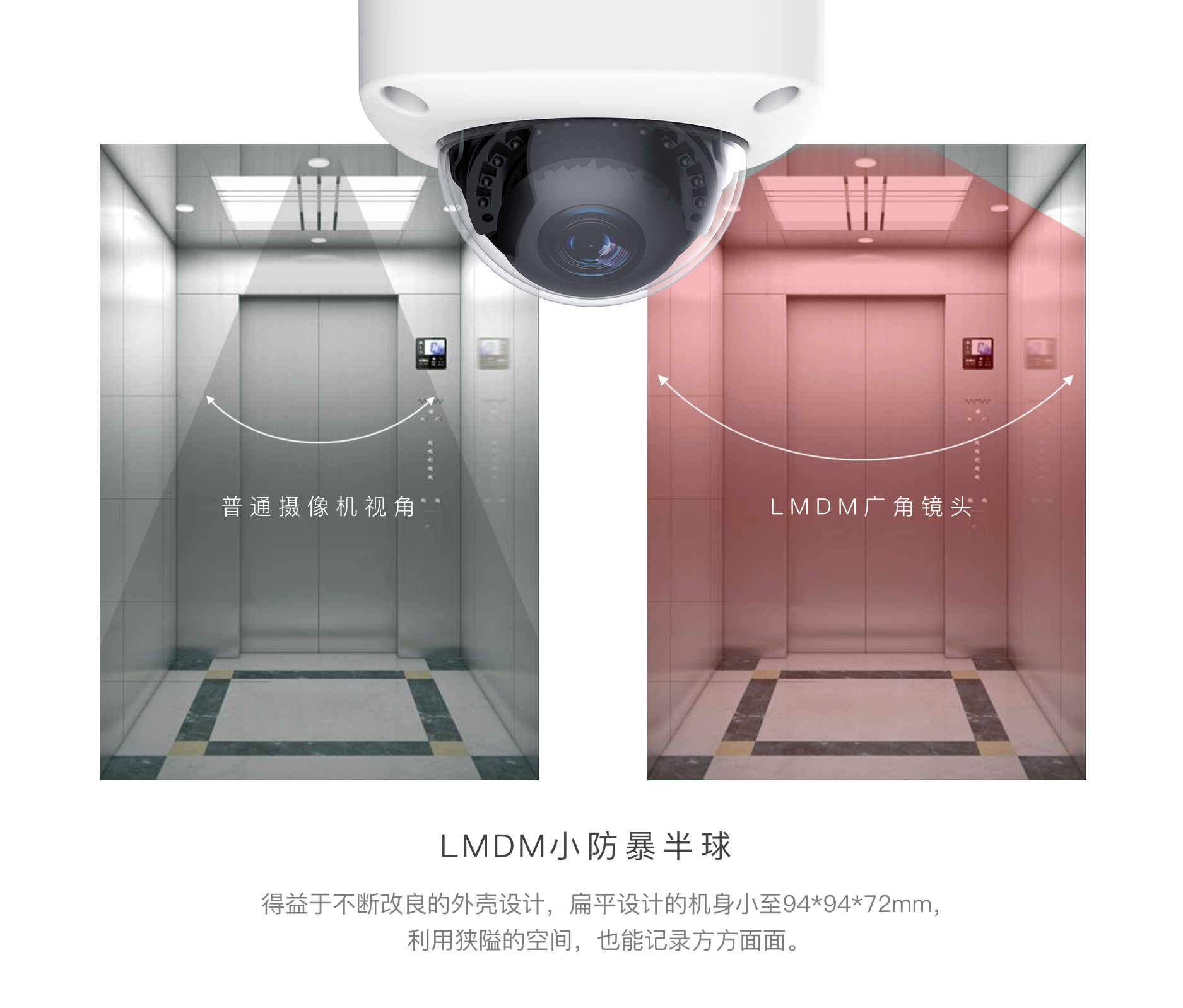 LMDM小防暴半球,是一个针对处所狭窄、楼层较低的优良处理计划。以别开生面的外壳设想和广角镜头,其在半球产物系列里被视为严重的冲破。