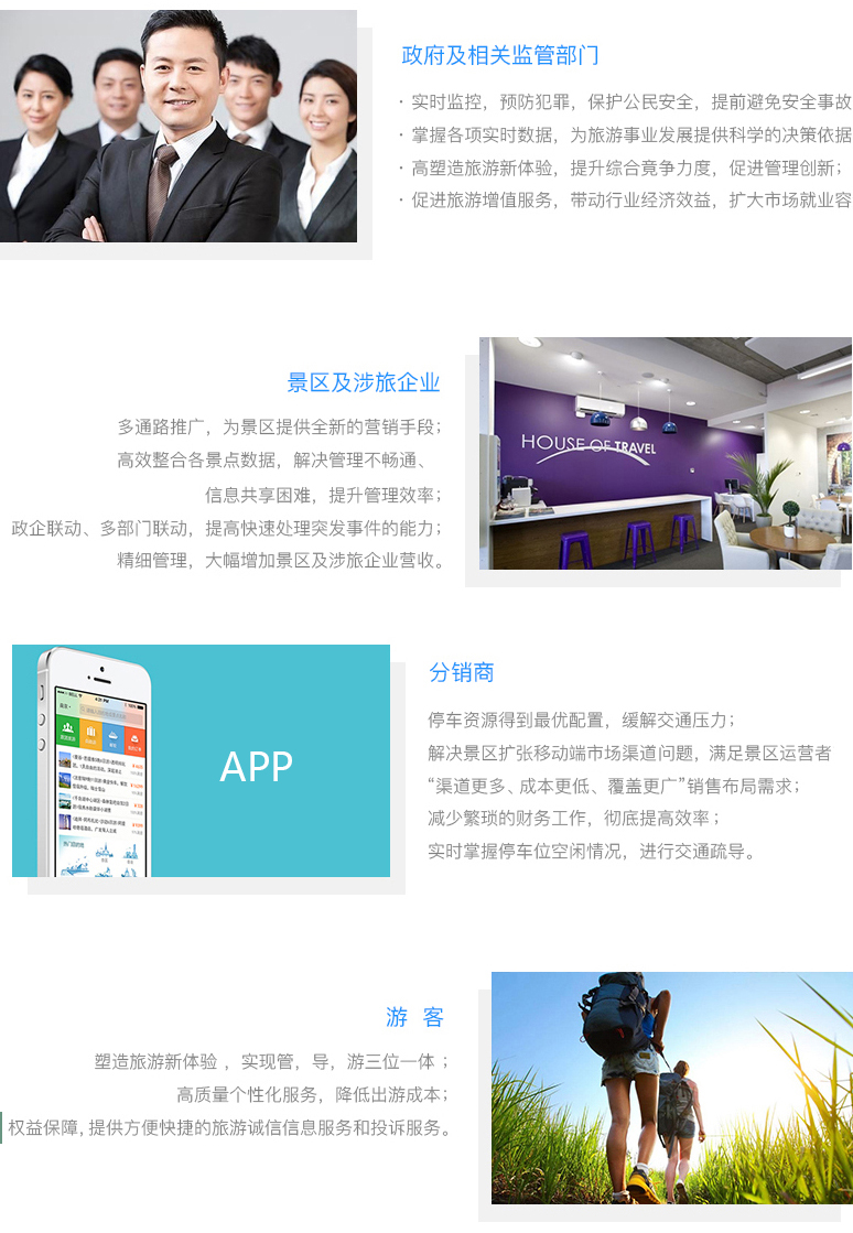 依靠景区大数据阐发供给增值办事,为景区办理者拟定成长战略,供给有用的数据撑持;赞助景区迈入聪明办理时期,为景区、为旅客费心、省时、省力、费事又省钱!